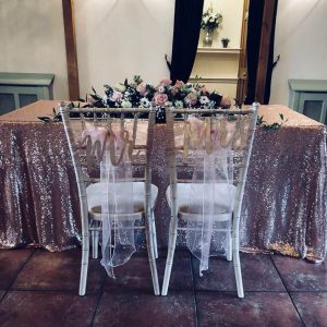 Wedding and event dressing service in Essex. Chair cover hire, table centre pieces, backdrops and lighting.