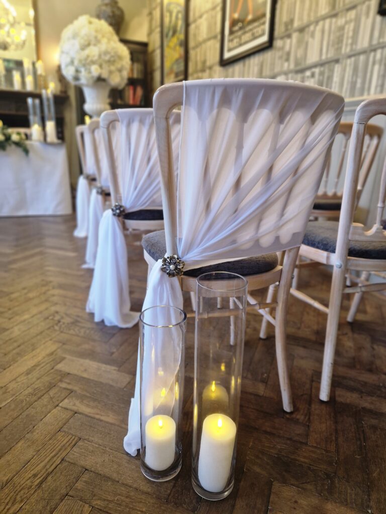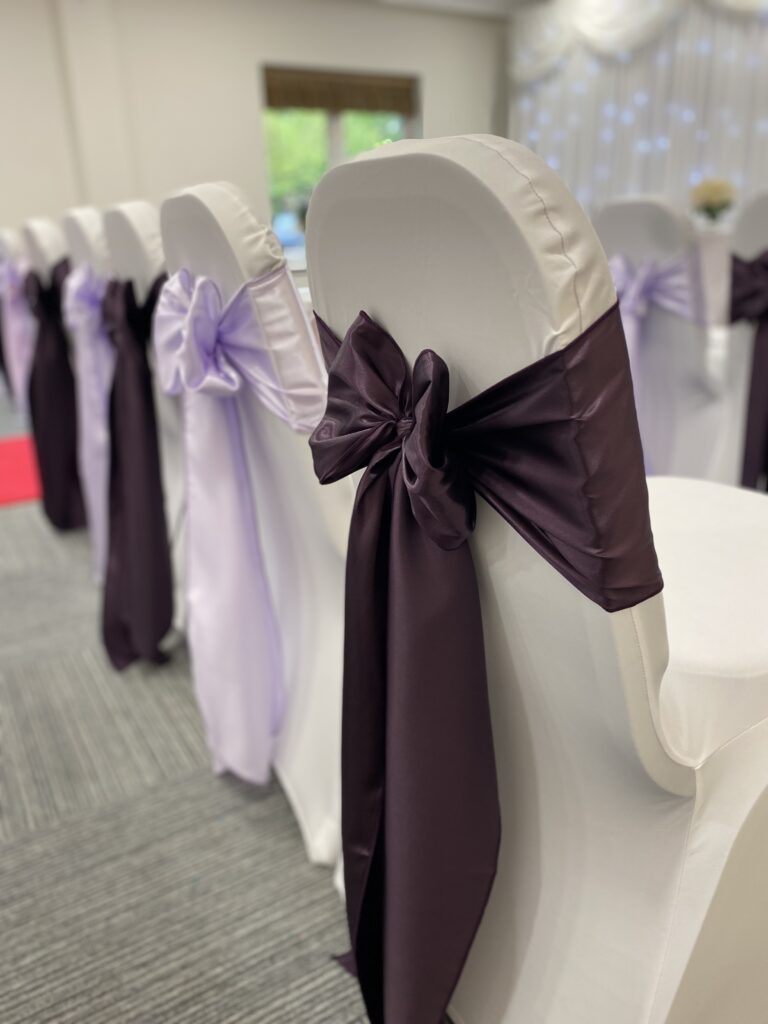 Stylish collection of wedding chair sashes in multiple colours. Whether its to frame your ceremony aisle or add luxury to your wedding breakfast we have a style for you to suit your wedding, your venue and your chairs